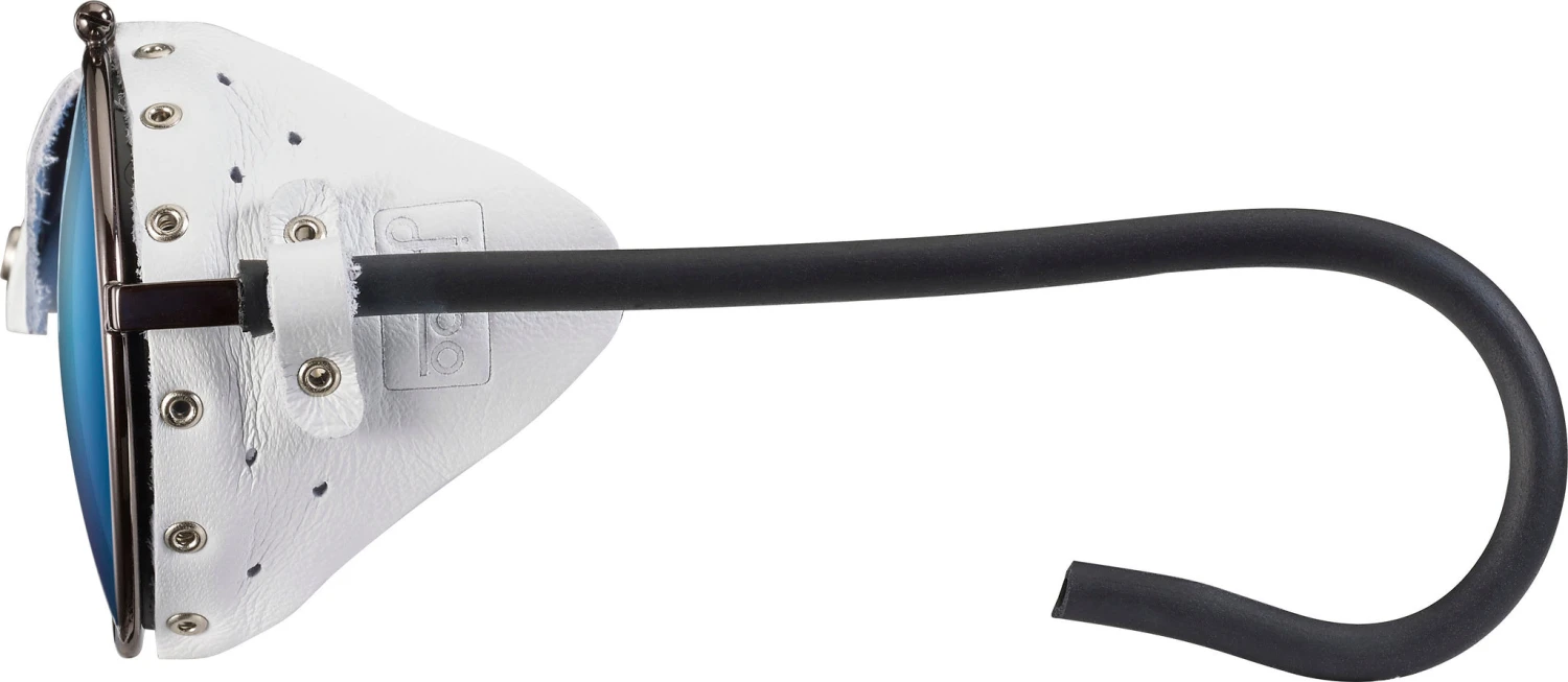 • Leather Side Shields : A special feature of glacier sunglasses, leather side shields have protected the eyes of generations of mountaineers and now create an unmistakably vintage look.